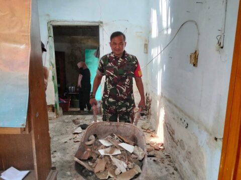 Banyuwangi – Peran TNI dalam mendukung program kemanusiaan kembali terlihat kuat di tengah masyarakat. Pada Rabu (12/11/2025) pukul 09.00 WIB, Babinsa Bakungan Sertu Tahfip dari Koramil setempat turut mendampingi pelaksanaan retrofitting atau penguatan struktur bangunan dalam rangka Program Rumah Aman Gempa yang digagas PMI Banyuwangi. Kegiatan ini berlangsung di rumah milik Ibu Sulih di Lingkungan Krajan, Kelurahan Bakungan.