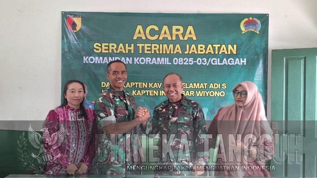 Banyuwangi, Glagah – Komando Rayon Militer (Koramil) 0825-03/Glagah resmi melaksanakan serah terima jabatan (sertijab) Danramil dari Kapten Kav I.M. Selamat Adi S kepada pejabat baru Kapten Inf Sabar Wiyono pada Sabtu, 22 November 2025, mulai pukul 09.00 WIB hingga selesai, bertempat di Makoramil Glagah.